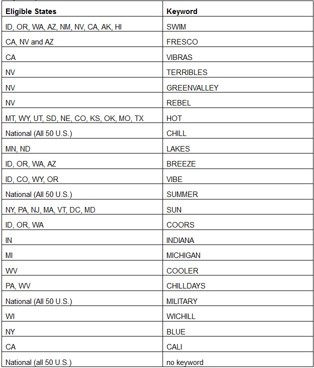 Enter the Coors Light Summer Sweepstakes & Instant Win today by clicking on the button below and following the onscreen instructions.